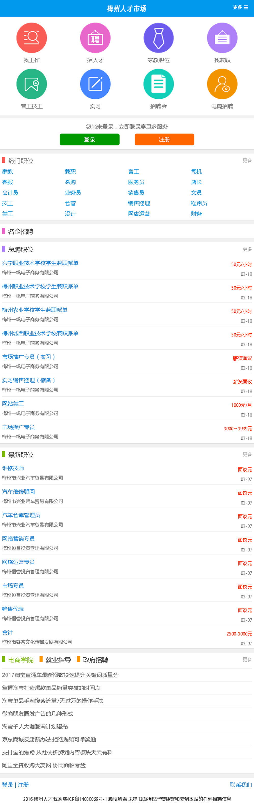 梅州人才市場(chǎng)www.mzjobs.cn是梅州本地服務(wù)全面、訪問(wèn)量、影響力大的人才求職招聘網(wǎng)站,精準(zhǔn)服務(wù)各類求職和專業(yè)人才包括家教、寒暑假工、實(shí)習(xí)、兼職、電商人才。我們憑借著雄厚的技術(shù)實(shí)力、專業(yè)的客服能力,以企業(yè)需求和用戶需求為導(dǎo)向,為用戶創(chuàng)造大的價(jià)值,為企業(yè)納才、人才求職提供高效快捷的交流平臺(tái)。梅州人才市場(chǎng)網(wǎng)同時(shí)發(fā)布了手機(jī)端、微信端、電腦端三網(wǎng)合一,讓你隨時(shí)隨地動(dòng)動(dòng)手指頭就可以找到滿意的工作和合適的人才。梅州人才市場(chǎng)網(wǎng)絡(luò)平臺(tái)已擁有超過(guò) 30萬(wàn)份的求職簡(jiǎn)歷,是梅州地區(qū)中小企業(yè)和眾多求職者的選渠道,現(xiàn)在業(yè)務(wù)量每月以 20% 左右的速度增長(zhǎng)。