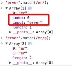 全局檢索:設置標志g則返回所有匹配子字符串,即不提供與子表達式相關的信息。沒有 index 屬性或 input 屬性。